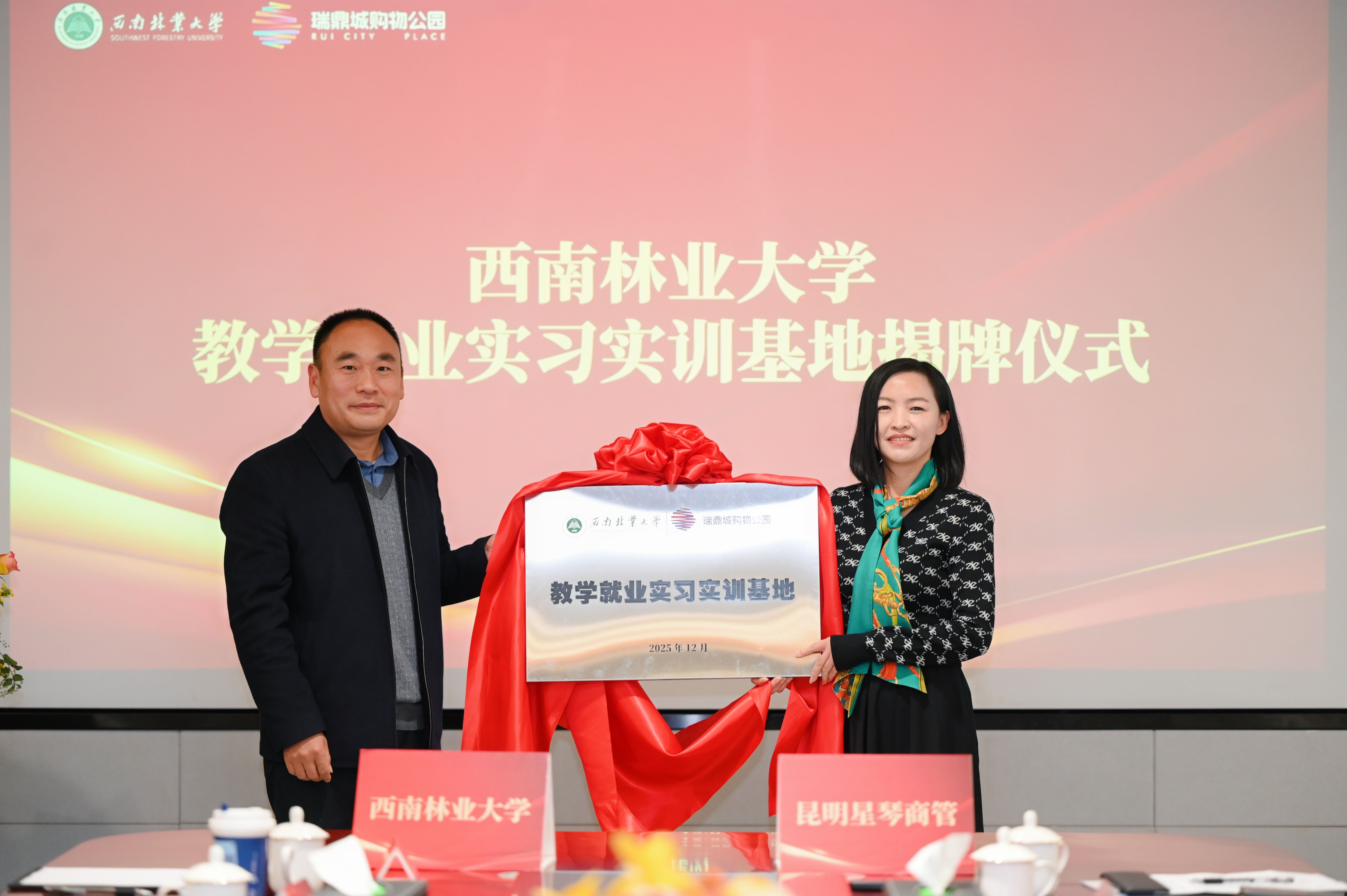 12月26日下午,公司与昆明瑞鼎城购物公园校企合作签约揭牌仪式在瑞鼎城尊良地产会议室举办。公司副董事长郭华,就业工作处处长李军、国内合作中心副主任简峰,尊良地产执行董事任正刚、副总经理代平、李涛,公司党委书记韩洁、副书记马泽、副经理李谦,世界杯冠军预测入口员工会代表、盘龙区政府代表、东华街道办事处代表等出席签约仪式。