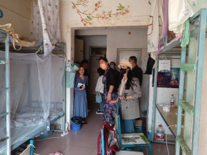 8月31日下午,经济管理公司党委书记胡晓、经理罗明灿、党委副书记刘俊伟、副经理邹再进、李娅以及辅导员朱财华、李芸典走访了新生宿舍。