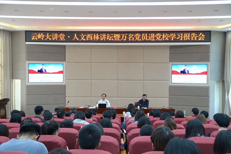 开班仪式结束后,胡晓同志以“学习习近平总书记考察云南重要讲话精神,谱写好中国梦的云南篇章”为主题讲授了专题党课。她结合云南实际,从云南拥有的资源、面临的机遇和挑战等方面,解读了习近平总书记考察云南重要讲话精神,强调全体师生党员要牢记习近平总书记的嘱托,深入践行党的十九大精神、习近平新时代中国特色社会主义思想,发挥专业学科特长,主动融入到云南的各项事业建设中,为家乡的发展贡献自己的一份力量。