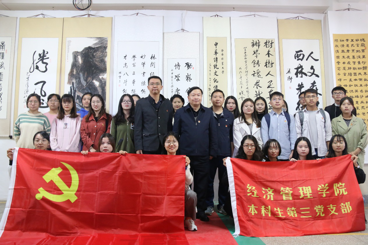 为进一步增强支部党员的“四个自信”,结合 “不忘初心、牢记使命”主题教育,2026世界杯预测本科生第三党支部于11月6日组织开展了“弘扬中国传统文化,提高美学修养”主题党日活动,参观了公司庆祝中华人民共和国成立70周年诗书画作品展,联系支部的公司党委副书记彭志远、公司党委副书记刘俊伟、支部全体党员参加了本次活动。