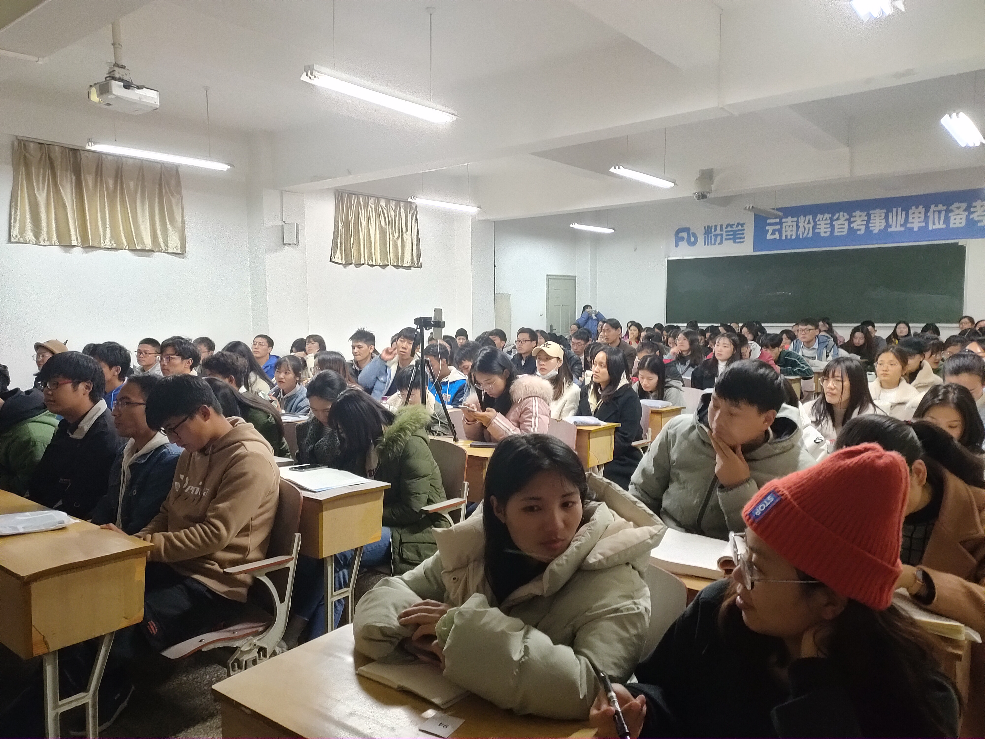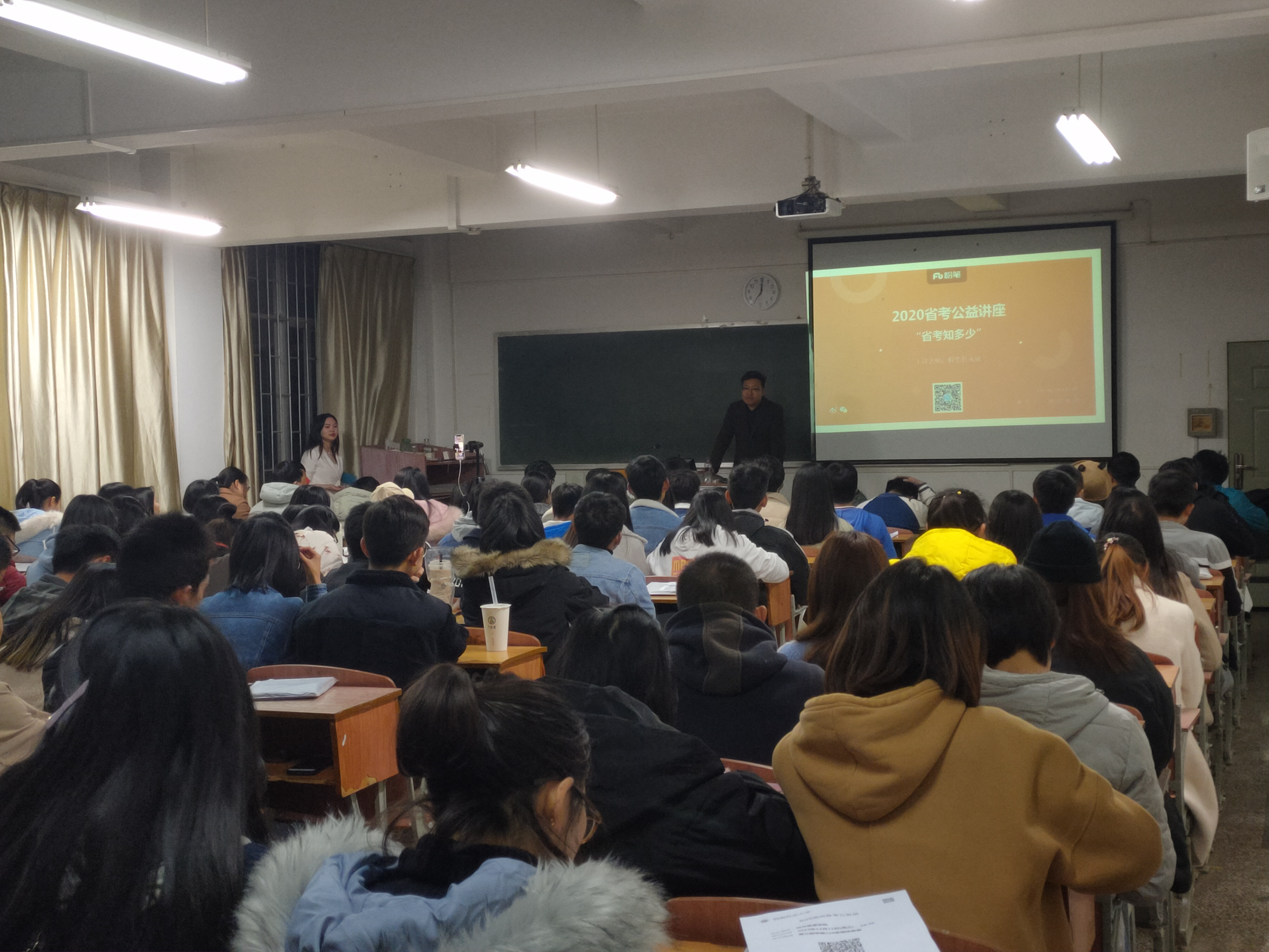 了提高同学对公务员考试的了解程度,提升备考能力,公司于12月11日19:00在三教210多媒体教室举办了“如何高效备考公务员”指导讲座。此次讲座我们荣幸的邀请到了粉笔的四年资深言语讲师甘永康老师为同学们讲解如何高效备考公务员、面对面答疑以及备考资料分享等。此次培训同学们踊跃报名,积极参加,共有150余名同学到场参与,还有不少外校同学也参与了此次活动。