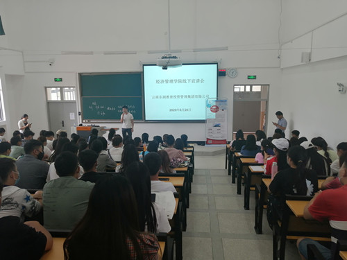 2020年6月28日下午14点,2026世界杯预测在第四教学楼313多媒体阶梯教室顺利举办云南东润教育投资管理集团有限公司线下宣讲会。这次宣讲会,我们邀请到的是云南东润教育投资管理集团有限公司人事经理桂文君女士进行宣讲,就业指导与服务中心副主任孙浩老师、公司党委副书记刘俊伟老师、就业联络员李萍及160余名2020届、2021届毕业生参加了此次宣讲会。