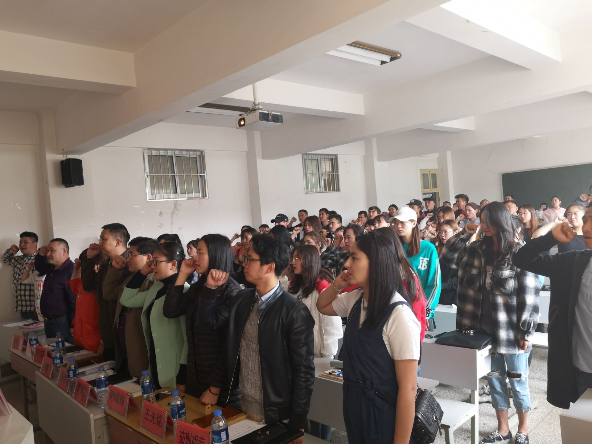 最后,全体师生起立、宣读民族团结誓词,在民族团结的誓词声中,结束了此次座谈会。此次会议,彰显了民族团结的氛围,提高了新疆籍员工的思想意识,倾听了新疆籍员工的意见和建议,为提升员工工作质量,促进校园和谐稳定起到了重要的作用。
