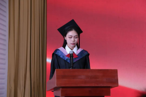 2019级电子商务本科班高文帆同学代表毕业生发言。她回顾了迷茫懵懂的大一、热情奔放的大二、紧张忙碌的大三、依依惜别的大四这几年的在校时光,学习、生活的一幕幕历历在目,恍如昨日。她说,我们应感恩公司的培养和老师们的谆谆教诲,我们更应扛起责任,以青春之名,赴时代之约。