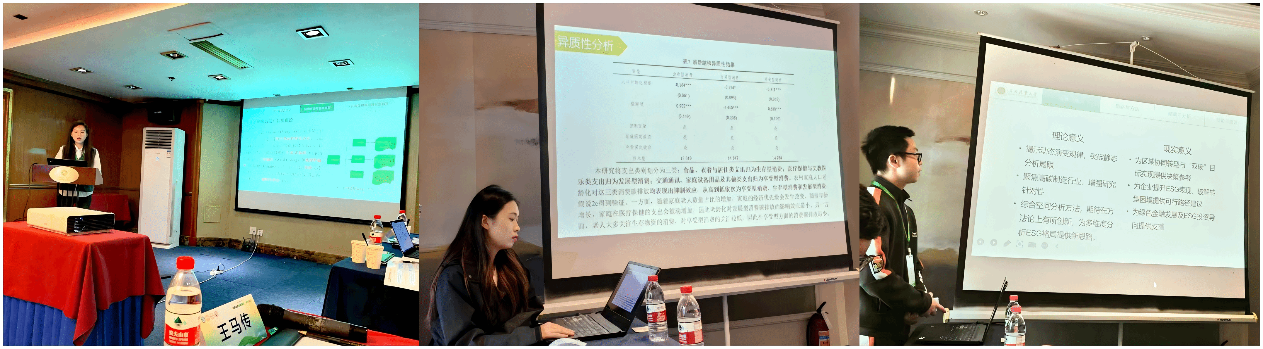 本次论坛以“‘两山’理念与美丽中国”为主题,与会专家就新时代如何推进美丽中国建设这一重大理论和现实问题进行了深入的交流和探讨。论坛围绕“生态文明与‘两山’理念”“新质生产力与高质量发展”“‘双碳’目标与生态环境”“城市建设与生态农业”等主题设置了四个平行论坛。雷甜甜、王鑫乐和王马传分别以《农村人口老龄化如何影响家庭消费碳排放?》《中国高碳 ESG 评级制造企业的分布格局演变及其驱动因素研究》《基于扎根理论的森林生态产品价值实践路径研究》为题在平行论坛上进行汇报,受到点评专家的一致肯定,同时点评专家就报告中的不足之处提出了修改意见,为进一步优化和完善学术成果指明了方向。
