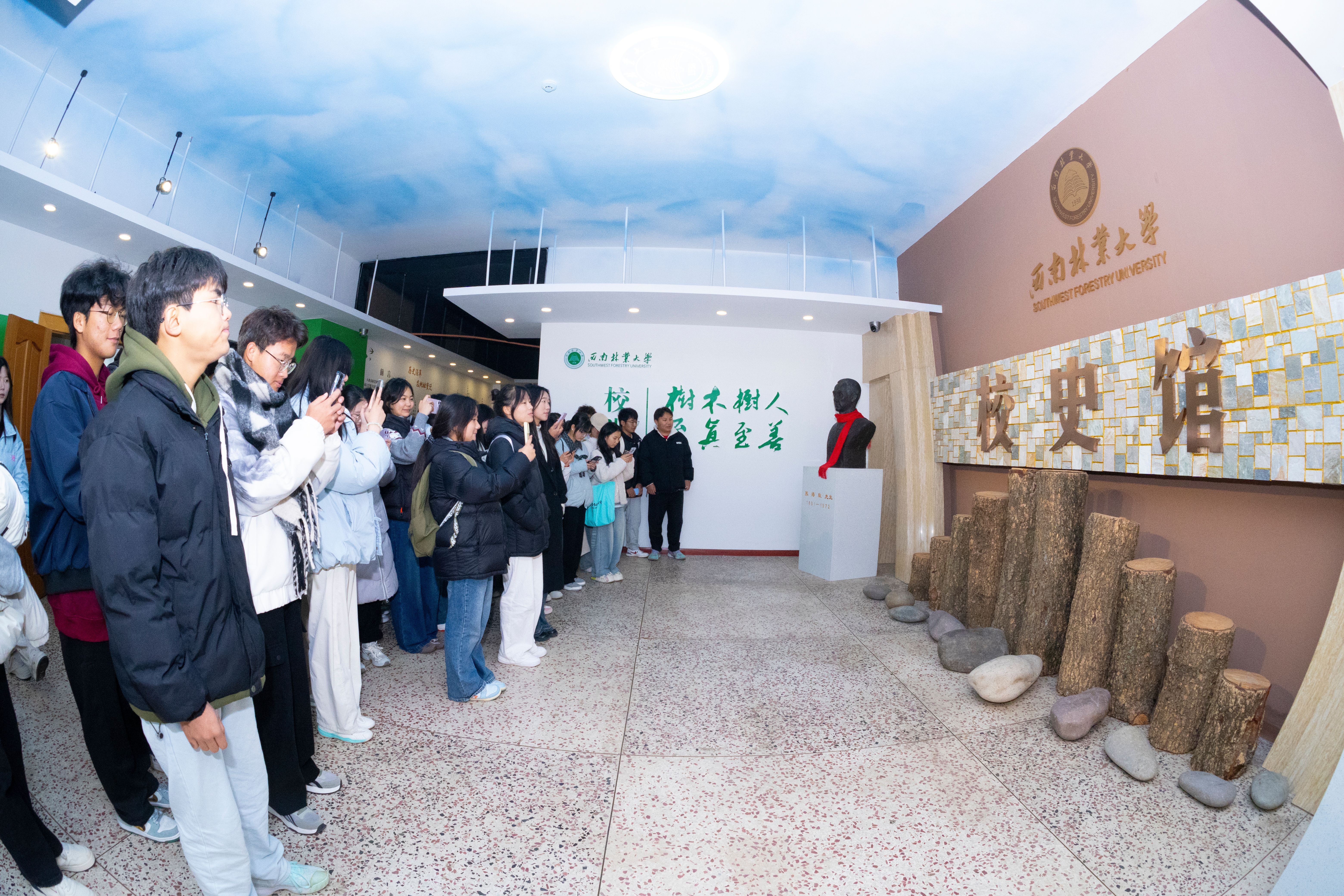 座谈结束后,同学们依次参观了校史馆、标本馆生物多样性展厅、木竹博物馆以及古茶树资源展馆,实地感受公司在生物多样性保护、林业文化和生态旅游等领域的教学资源与学科实力。